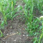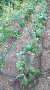 Pero bueno. Como no hay mal que por bien no venga, el confinamiento nos había dejado más tiempo para trabajar las huertas, que nos autoabastecen y cuyos sobrantes nos sirven para obtener unos pequeños ingresos en un mercado agroecológico que se hace todos los meses en Cacabelos. Las cuatro o cinco pequeñas parcelas que tengo cedidas de palabra en esta tierra de minifundio estaban mejor trabajadas que nunca. Después de una buena cosecha de guisantes, habas y brasicae varias de la huerta de primavera, esperábamos una estupenda producción de la huerta de verano, más fogosa y variada que nunca gracias al laboreo concienzudo de la tierra, el abonado con estiércol de mula, el buen tiempo y, sobre todo, el haber hecho las cosas a su debido tiempo y sin demasiadas prisas. Cuando la mayoría de las plantas estaban en el momento clave de su desarrollo vegetativo, a punto de madurar las primeras tandas de fruto de las solanáceas y las cucurbitáceas, el pasado 21 de julio por la tarde nos cayó una granizada monumental, que dejó las plantas patidifusas. Aquí unas fotos del magnicidio.